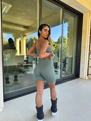 This biker short features seamless construction, all-over ribbing, elastic drawstring waist, and Sommer Ray patch.